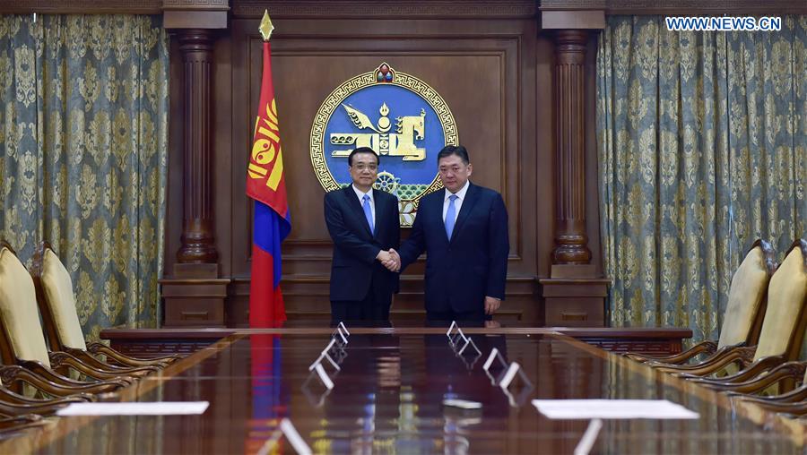 O premiê chinês, Li Keqiang, encontrou-se na manh? de ontem (14) em Ulan Bator com o presidente do Grande Estado Khural ( Parlamento Nacional da Mongólia), Miyeegombo Enkhbold.