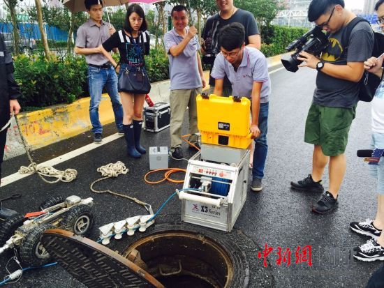 Wuhan, 18 jul (Xinhua) -- Um rob? de sondagem wireless está sendo usado na Província de Hubei, no centro da China, para exames rotineiros de canos de esgoto em que o gás tóxico pode colocar as vidas de encanadores sob risco.