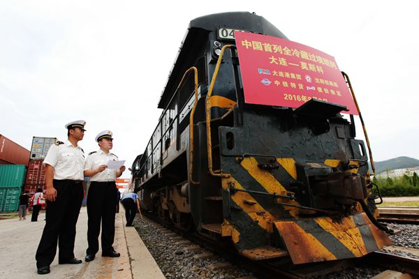 Dalian, 9 ago (Xinhua) -- O primeiro trem com contêineres refrigerados da China partiu na segunda-feira de Dalian (nordeste da China) a Moscou, marcando o início de um novo vínculo de transporte entre os dois países.