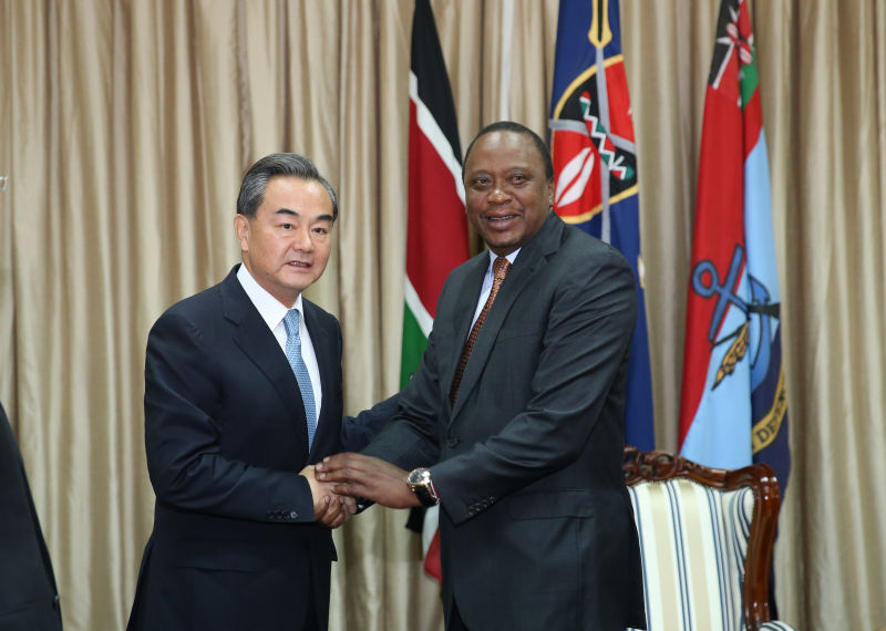 O presidente queniano, Uhuru Kenyatta, recebeu nesta quarta-feira (10) em Nairobi, capital do Quênia, o Ministro das Rela??es Exteriores da China, Wang Yi.