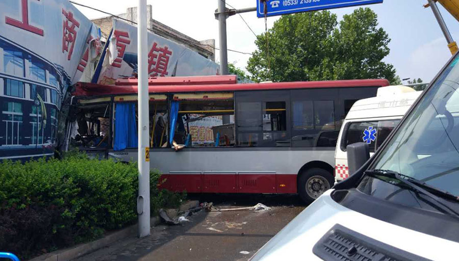 O acidente aconteceu no distrito de Boshan da cidade de Zibo às 8h23, quando um caminh?o chocou-se contra dois ?nibus, um carro e uma motocicleta em uma rua local, segundo o governo distrital de Boshan.