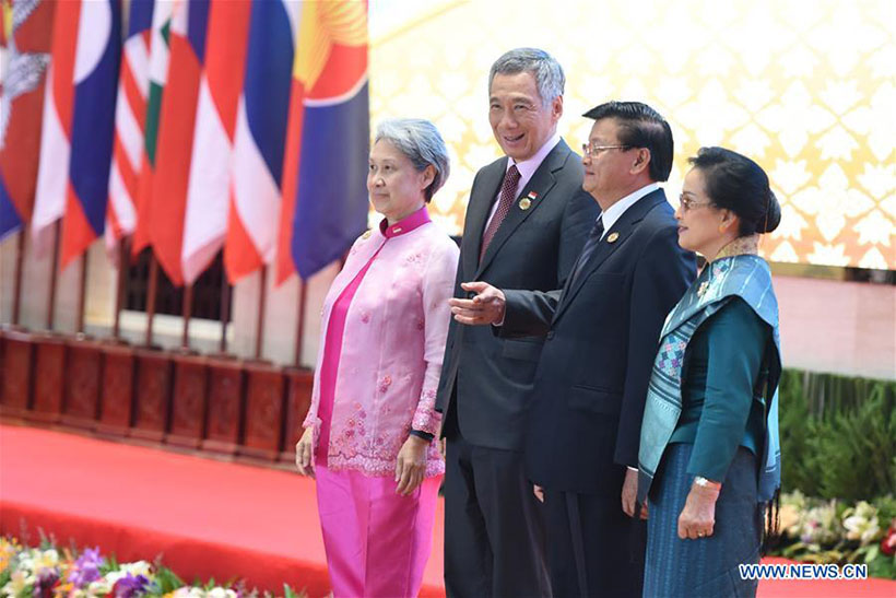 O primeiro-ministro do Laos Thongloun Sisoulith conversa com o primeiro-ministro singapurense Lee Hsien Loong em Vientiane, capital do Laos, a 6 de setembro de 2016. A Associa??o das Na??es do Sudeste Asiático realizou nesta última ter?a-feira as suas 28a e 29a cúpulas na capital laociana, com o tema de “Transformar a Vis?o em Realidade para Uma Comunidade Dinamica da ASEAN”.