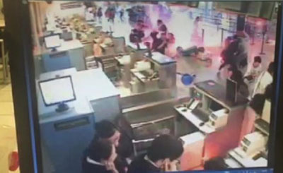 O homem cortou o próprio pesco?o com uma faca no aeroporto, mas foi levado para o hospital para tratamento médico, segundo a polícia.