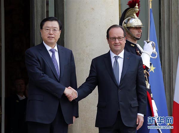 Zhang, presidente do mais alto órg?o legislativo da China, Comitê Permanente da Assembleia Popular Nacional (APN), encontrou o presidente francês Fran?ois Hollande, o primeiro-ministro Manuel Valls, o presidente da Assembleia Nacional Claude Bartolone, e o presidente do Senado Gerard Larcher durante sua visita de quatro dias ao país, que se encerrou ter?a-feira.