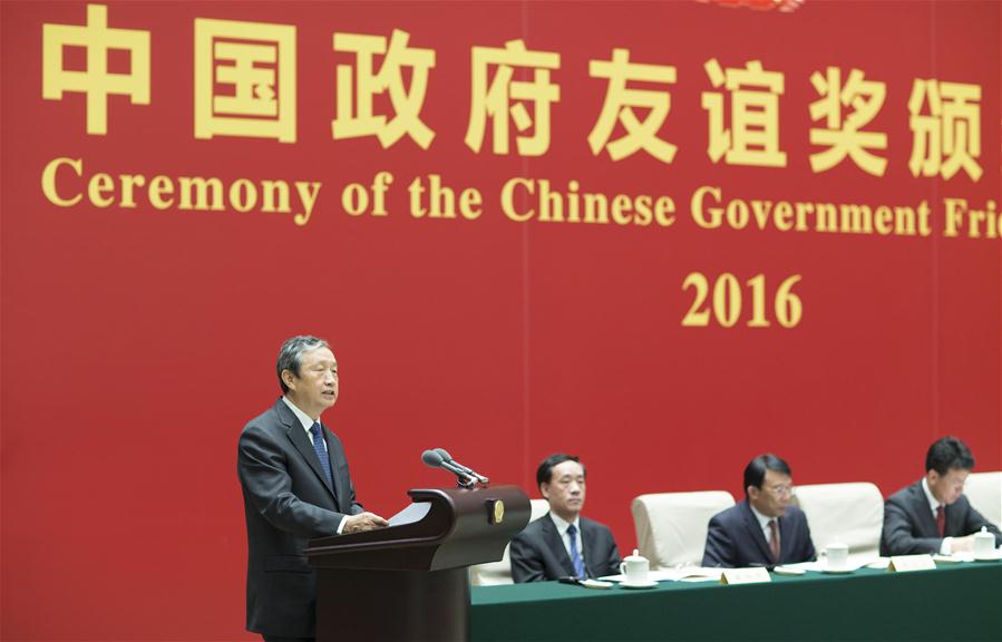 Beijing, 30 set (Xinhua) -- O governo chinês conferiu na quinta-feira seu Prêmio da Amizade para 50 especialistas estrangeiros de 18 países que trabalham na China. O prêmio é oferecido como reconhecimento pelas contribui??es para o desenvolvimento do país.