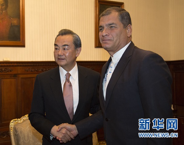 O presidente do Equador, Rafael Correa, agradeceu na segunda-feira à China, durante uma reuni?o com o ministro das Rela??es Exteriores do país asiático, Wang Yi, o apoio e assistência ao desenvolvimento equatoriano e manifestou a esperan?a por uma coopera??o bilateral mais estreita.