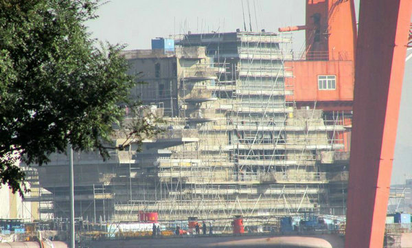 Os trabalhos de desenho do casco do navio est?o concluídos e os trabalhadores est?o instalando os equipamentos no corpo do porta-avi?es, disse o porta-voz Wu Qian.