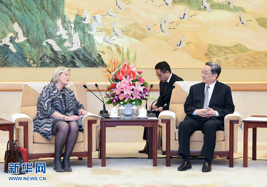 Beijing, 11 nov (Xinhua) -- O principal assessor político chinês, Yu Zhengsheng, se reuniu na quinta-feira com a presidenta da Primeira Camara do Parlamento Holandês, Ankie Broekers-Knol, que visita a China para promover o entendimento bilateral.