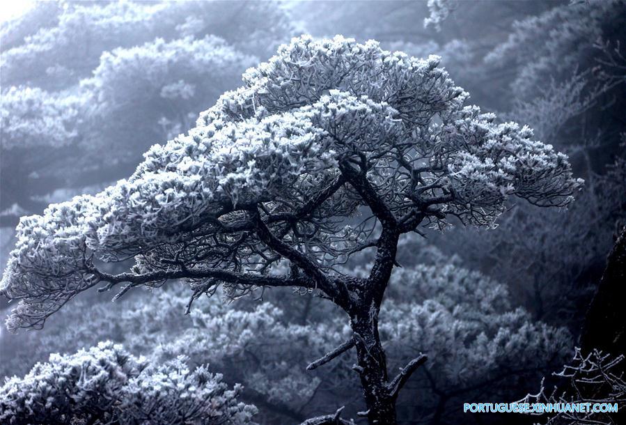 Vista da paisagem nevada da montanha Huangshan, na cidade de Huangshan, na província de Anhui, no leste da China, em 23 de novembro de 2016.