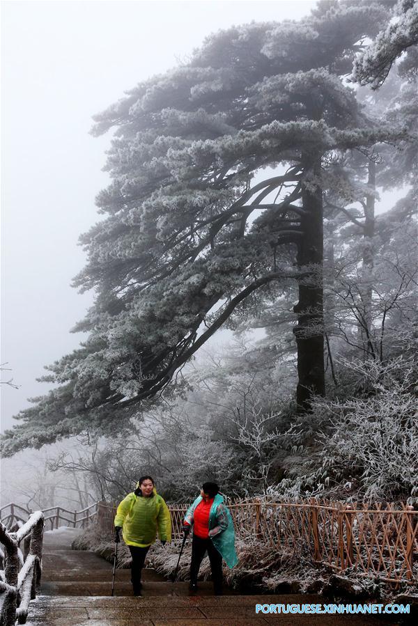 Turistas observam a paisagem nevada da montanha Huangshan, na ciadade de Huangshan, na província de Anhui, no leste da China, em 23 de novembro de 2016. (Xinhua/Shi Guangde)