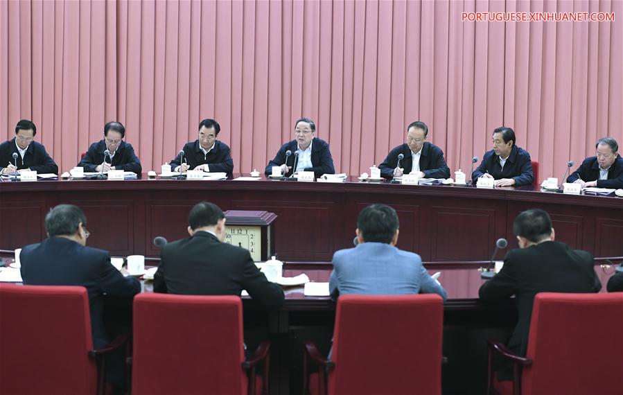 Yu Zhengsheng, presidente do Comitê Nacional da CCPPCh, presidiu a sess?o e fez um discurso.
