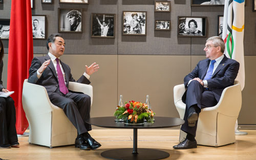 Wang Yi afirmou que o COI é a mais importante organiza??o desportiva internacional no mundo, dando contribui??es ao desenvolvimento esportivo global e aumentando o conhecimento e a amizade entre os povos. Como um participante dos Jogos Olímpicos, a China organizou as Olímpiadas de Beijing e Jogos Olímpicos da Juventude de Nanjing. Agora o país está se preparando para os Jogos Olímpicos de Inverno de 2022.