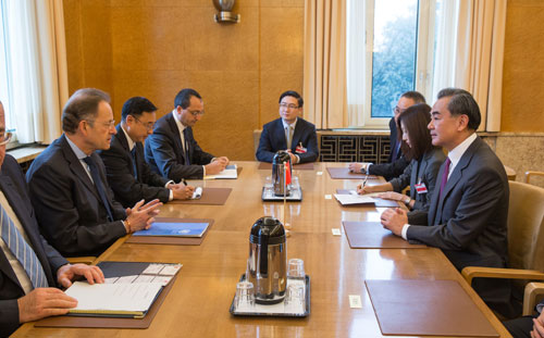O ministro das Rela??es Exteriores da China, Wang Yi, se encontrou no dia 11, em Genebra com o diretor-geral do Escritório das Na??es Unidas em Genebra, Michael Muller.