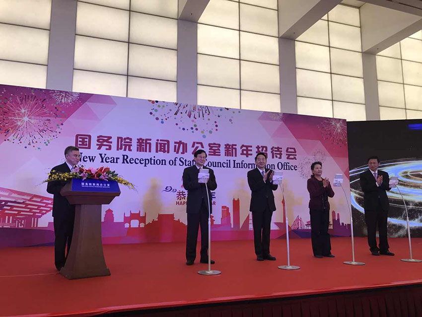 Cerim?nia de lan?amento da aplica??o móvel “SCIO Release” e do sal?o online de coletivas de imprensa foram realizadasna Rece??o do Ano Novo do Gabinete de Informa??es do Conselho de Estado (SCIO, na sigla em inglês), no dia 15 de dezembro de 2016. (Foto fornecida pelo SCIO)