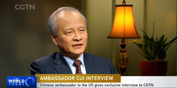 BEIJING, 3 de jan (Diário do Povo Online) – Durante uma entrevista exclusiva com Mike Walter, da Rede Global de Televis?o da China (CGTN, na sigla em inglês), o embaixador chinês nos Estados Unidos, Cui Tiankai, afirmou que a China se adaptará ao próximo governo dos EUA, e que está recetivo a trabalhar com a próxima administra??o de Trump.