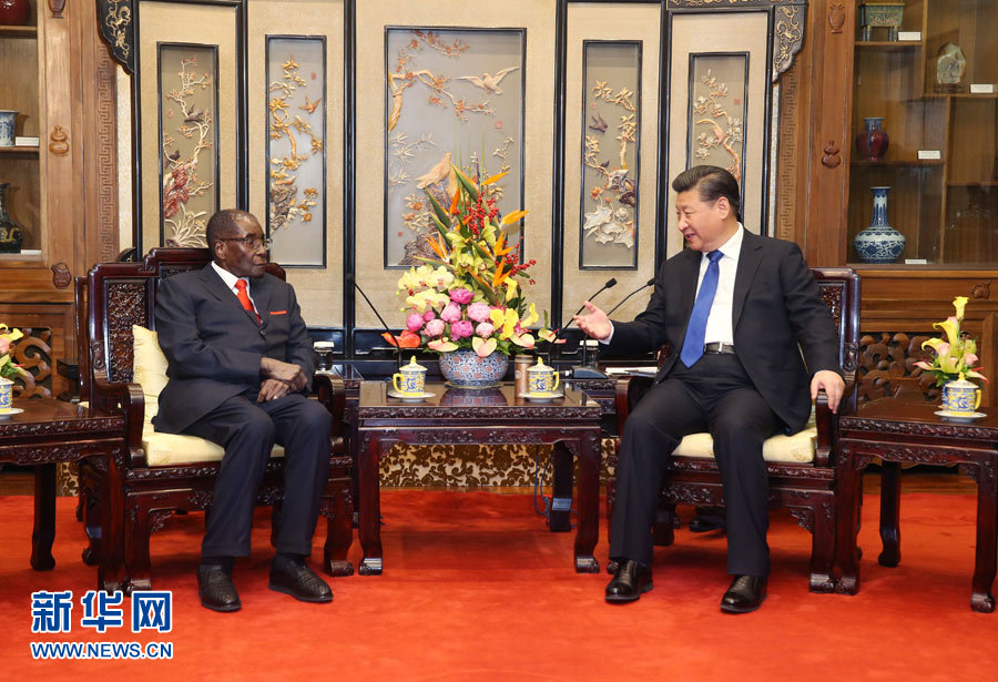 No encontro, Xi Jinping disse que ambos os povos possuem uma amizade profunda e que a China jamais se esquecerá do amigo velho, além de valorizar tal relacionamento. A China elogia o apoio do Zimbábue nos problemas relacionados com os interesses fundamentais chineses e apoia também como sempre o país africano na defesa da soberania, seguran?a, interesse de desenvolvimento e autonomia do caminho de desenvolvimento.
