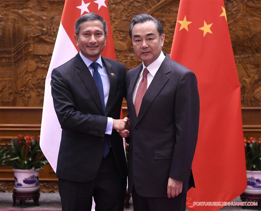 O ministro chinês das Rela??es Exteriores, Wang Yi, se reuniu com seu homólogo cingapuriano, Vivian Balakrishnan, à margem de uma série de reuni?es cooperativas de alto nível entre os dois países.