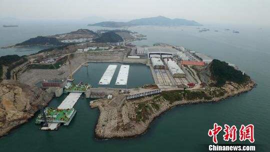 O túnel de 5.664 metros de extens?o, considerado o de tubo submerso mais longo do mundo, é composto por 33 se??es e está faltando atualmente 12 metros para ser concluído. A constru??o da ponte come?ou em dezembro de 2009 em Zhuhai.