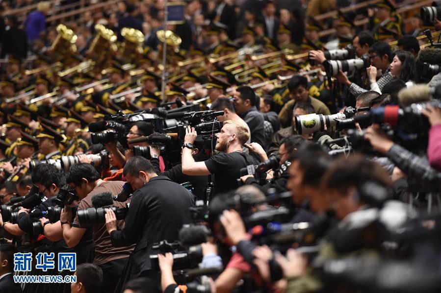 Imprensa estrangeira acompanha a abertura da 5a sess?o anual da 12a Assembleia Popular Nacional, a 5 de mar?o.