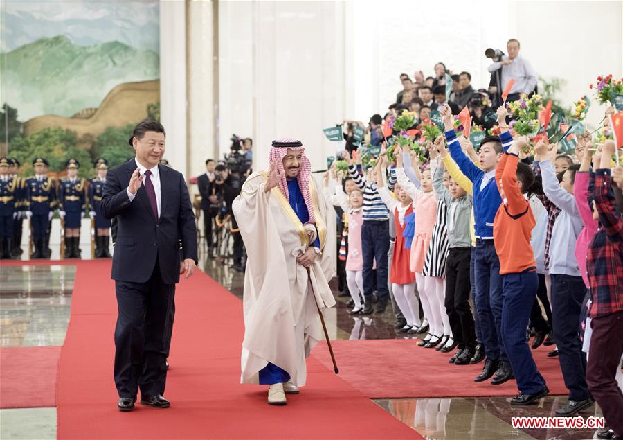 O presidente chinês, Xi Jinping, se reuniu ontem (16), no Grande Palácio do Povo, em Beijing, com o rei Salman, da Arábia Saudita. Os líderes dos dois países concordaram em manter a dinamica de desenvolvimento das rela??es bilaterais e promover coopera??es pragmáticas de todas as áreas para que a parceria estratégica global sino-árabe obtenha novos progressos.