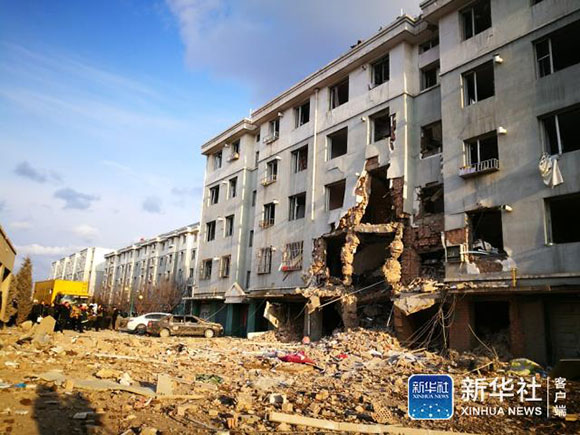 A explos?o foi t?o forte que 5 dos 14 edifícios na comunidade residencial de Xiangyang em Tumd foram afetados. Oitenta e sete casas foram danificadas, segundo a polícia.