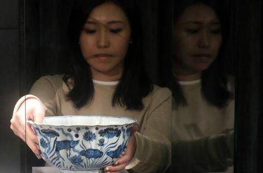 Hong Kong, 6 abr (Xinhua) -- Uma tigela "Piscina de Peixe" da dinastia Ming foi arrematada pelo valor de 229 milh?es de dólares de Hong Kong (US$ 29,5 milh?es) na venda de primavera da Sotheby's em Hong Kong na quarta-feira, sendo a pe?a de porcelana da dinastia Ming com o segundo maior valor de venda em um leil?o.