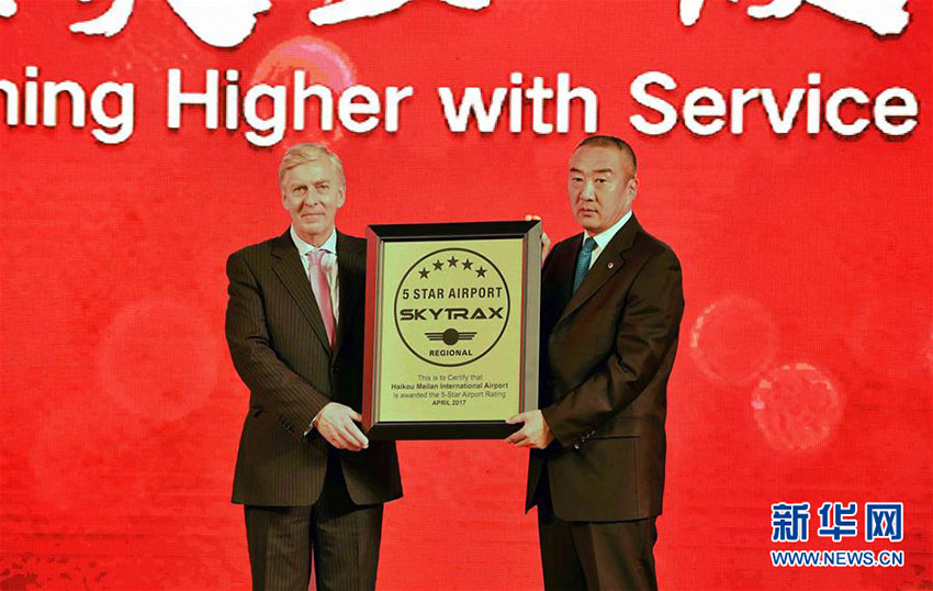 Haikou, 11 abr (Xinhua) -- O Aeroporto internacional de Meilan em Haikou, capital da província insular de Hainan, no sul da China, recebeu certifica??o de cinco estrelas do Skytrax na sexta-feira.