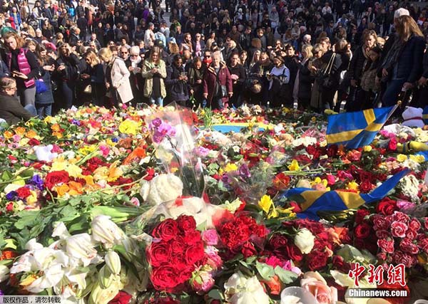Ao meio dia do dia 10, a popula??o da Suécia fez um minuto de silêncio em diversos lugares públicos e as bandeiras foram hasteadasaté a metade nos prédios de referência, para homenagear as vítimas do atentado realizado com um caminh?o. O atropelamento em massa matou quatro pessoas e feriu 15 na tarde do dia 7 de abril, no centro da cidade de Estocolmo.