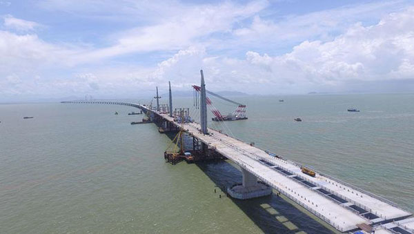 Os trabalhos principais da ponte de 55 km haviam sido concluídos em setembro de 2016, os quais têm a abertura ao transito prevista para o final deste ano.