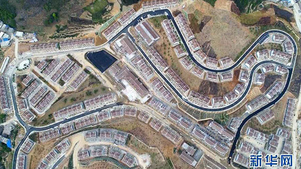 Vista aérea do sítio de reloca??o na aldeia Kedu, distrito de Pingtang. /Xinhua Foto
