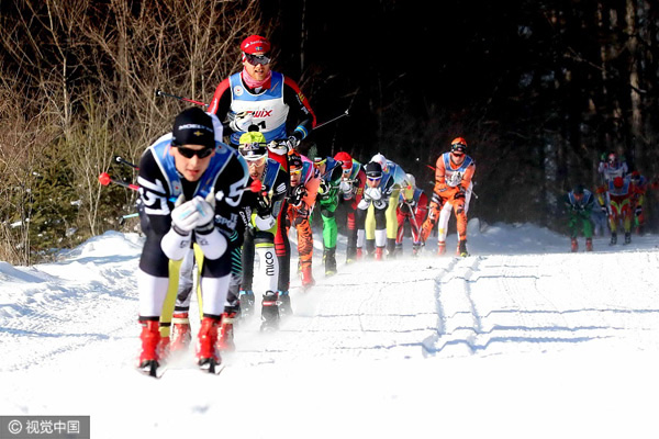 Participantes esquiam em Vasaloppet China, uma competi??o de esqui realizada em Changchun, província de Jilin, a 4 de janeiro de 2017.