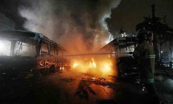 ?nibus em chamas e confrontos com a polícia. A popula??o respondeu aos apelos dos sindicatos, pondo em marcha a primeira greve-geral dos últimos 20 anos da história brasileira, tendo sido registrados incidentes ao longo dos 26 estados e distritos federais do país.