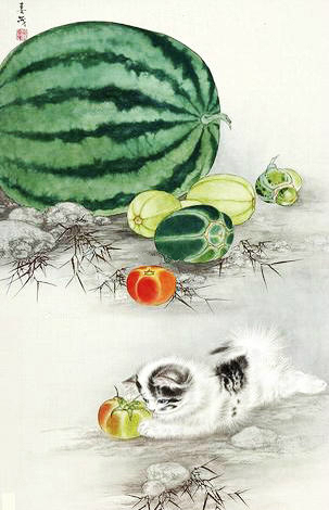 Melancias e Gato, por Mi Chunmao. [Foto/artron.net]