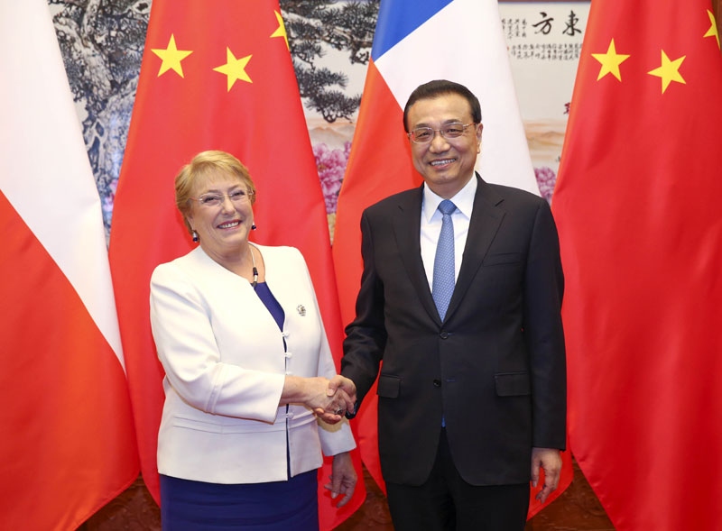 Li fez as declara??es ao se reunir com a presidente chilena, Michelle Bachelet, em visita a Beijing para participar do Fórum do Cintur?o e Rota para Coopera??o Internacional.