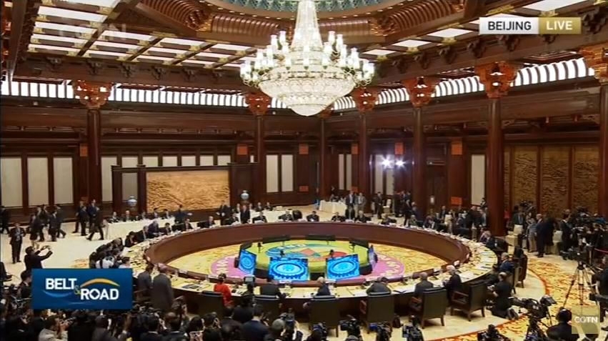 Presidente Xi Jinping preside a Mesa-redonda de Líderes, no ambito do Fórum Cintur?o e Rota para Coopera??o Internacional, a 15 de maio.
