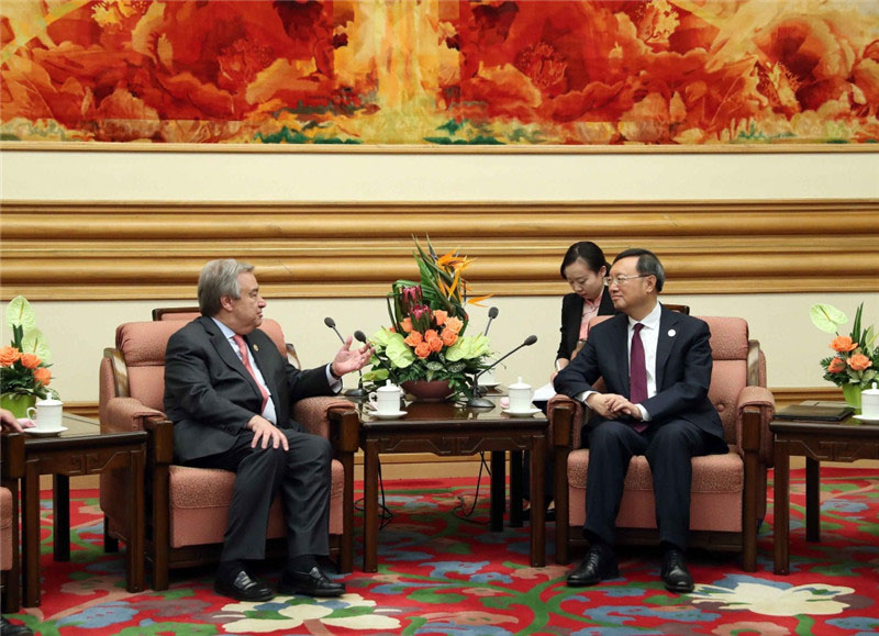 Yang fez as declara??es ao se reunir com o secretário-geral da ONU, António Guterres, à margem do Fórum do Cintur?o e Rota para Coopera??o Internacional.