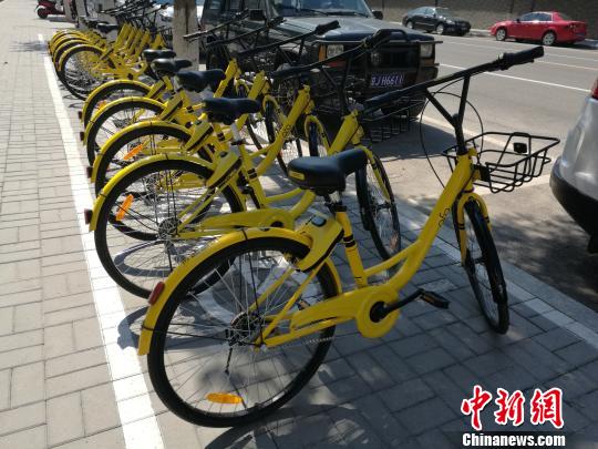 Beijing, 9 jun (Xinhua) -- Cerca de 300 cercas virtuais foram estabelecidas no distrito de Tongzhou em Beijing para operar como estacionamentos para as bicicletas compartilhadas, após as bicicletas estacionadas desordenadamente terem causado reclama??es.