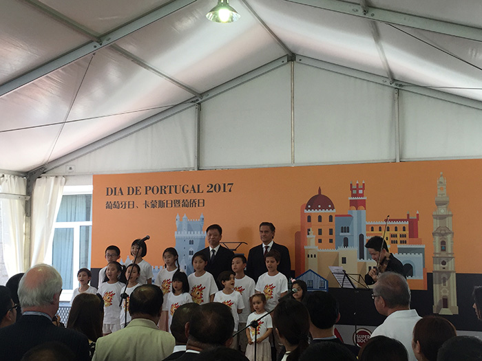 O evento contou ainda com a interpreta??o d’“A portuguesa” e do Hino Nacional da China por um grupo de crian?as de várias nacionalidades, entre outras performances musicais na língua de Cam?es.
