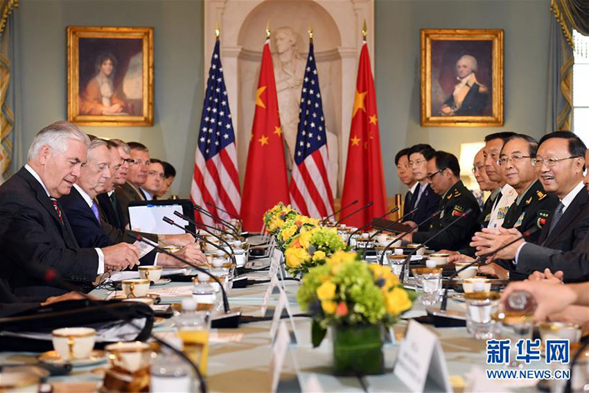 O Conselheiro de Estado chinês, Yang Jiechi, co-presidiu o diálogo com o Secretário de Estado dos EUA, Rex Tillerson, e o Secretário de Defesa norte-americano, James Mattis.