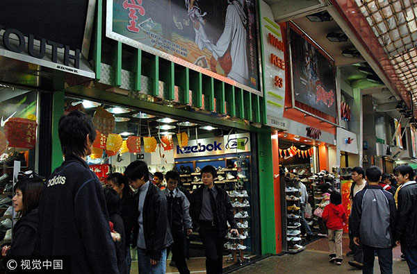 A Rua Fa Yuen é onde os jovens de Hong Kong v?o comprar cal?ados da moda desde os anos 80. Nesta rua de cerca de 150 metros, existem mais de 40 sapatarias e lojas de roupas desportivas.