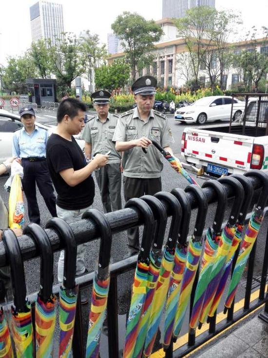 Um funcionário do departamento de gest?o urbana da cidade disse que os guarda-chuvas estariam a ocupar muito espa?o nas áreas públicas. As regras proíbem a suspens?o de objetos em grades, árvores ou cercas, a fim de prevenir que a paisagem urbana seja prejudicada.