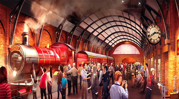 No livro, Harry viajava até à escola de feiti?aria de Hogwarts de comboio, partindo da plataforma secreta entre as plataformas 9 e 10.