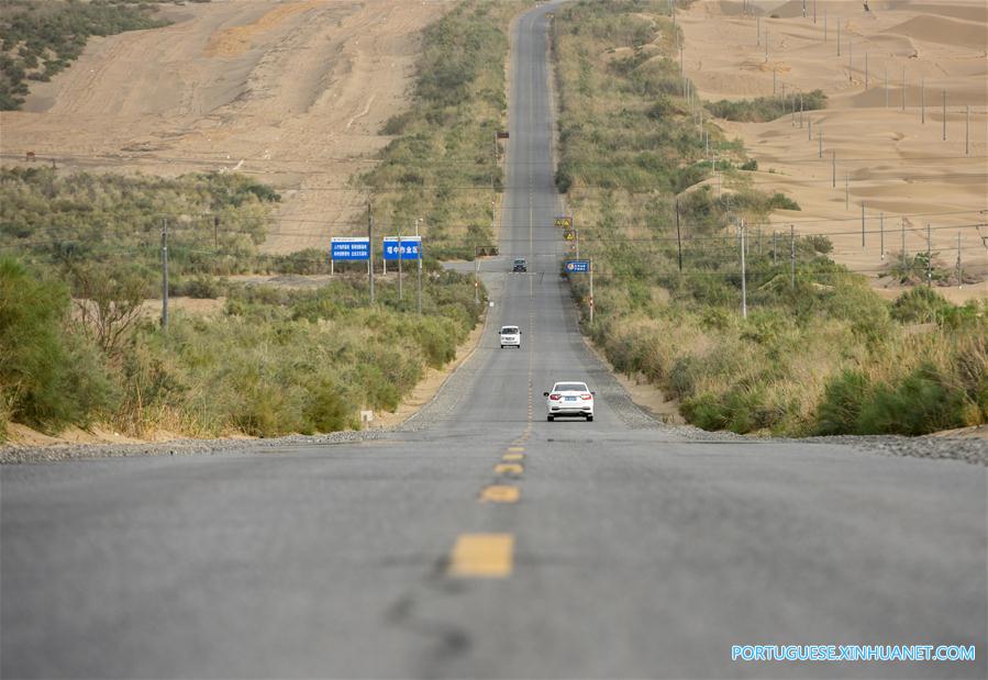 "Muro verde" protege rodovia desértica da invas?o de areia em Xinjiang (5)