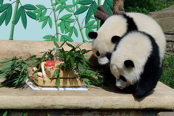 Chongqing, 12 jul (Xinhua) -- Um casal de pandas gêmeos celebrou seu primeiro aniversário nesta ter?a-feira em um jardim zoológico no Município de Chongqing, no sudoeste da China.