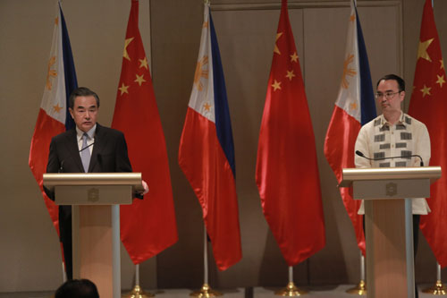 Manila, 26 jul (Xinhua) -- O ministro chinês das Rela??es Exteriores Wang Yi e seu homólogo filipino Alan Peter Cayetano debateram a explora??o conjunta no Mar do Sul da China em uma coletiva de imprensa na capital filipina na ter?a-feira.