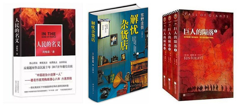 Na lista de livros eletr?nicos pagos do Kindle, os três mais populares foram “Em Nome do Povo”, escrito pelo chinês Zhou Meisen, “Miracles of the Namiya General Store”, criado por Keigo Higashino, e “Queda de Gigantes” – livro um da Trilogia do Século histórica escrita pelo autor britanico Ken Follett.