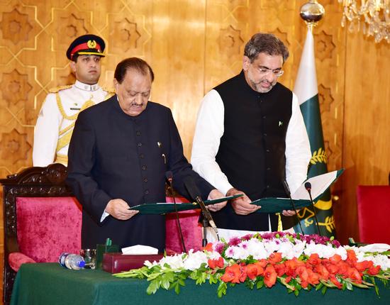 Abbasi fez juramento na noite da ter?a-feira logo após o parlamento o elegeu com ampla maioria. Ele pertence ao partido da Liga Mu?ulmana do Paquist?o-Nawaz do Nawaz Sharif.