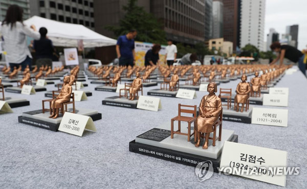 De acordo com a Agência de Notícias Yonhap, um total de 500 estátuas em miniatura de uma menina foram exibidas na pra?a Cheongye Stream no centro de Seul. A exibi??o come?ou às 8h00 (horário local) e durará por 8 horas e 14 minutos para simbolizar a data. Cada estátua tem o nome de uma vítima inscrito nela. As 500 estátuas representam 239 vítimas da Coreia do Sul e um número n?o identificado de vítimas na República Popular Democrática da Coreia (RPDC).