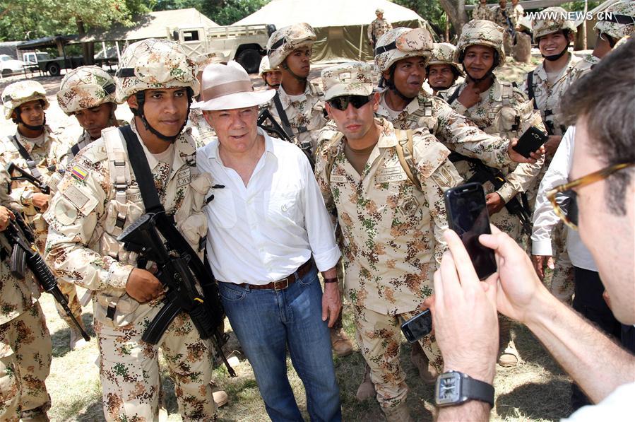 Bogotá, 17 ago (Xinhua) -- O presidente colombiano, Juan Manuel Santos, supervisionou na ter?a-feira a retirada final das armas revogadas pelos rebeldes das For?as Armadas Revolucionárias da Col?mbia (FARC).