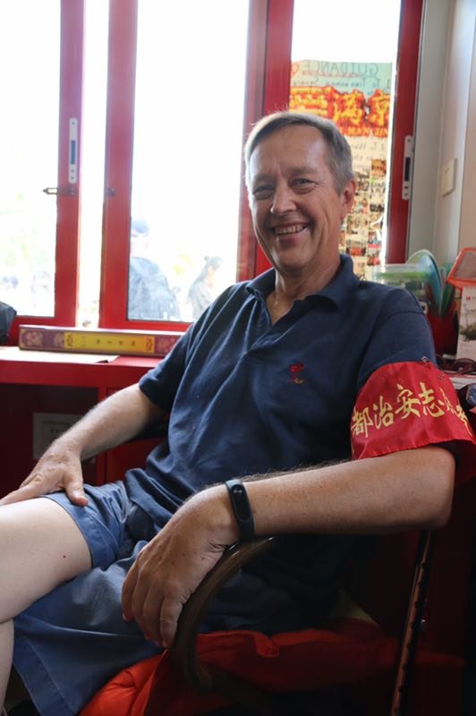 “ ‘Dama’ significa tia, devido à maioria dos voluntários serem mulheres. Sou um ‘Xicheng Daye’, que significa um ‘tio atuando como voluntário no distrito de Xicheng’”, disse Crossman, em mandarim fluente com sotaque de Beijing. Ele domina também o cantonês com fluência, tendo em conta que trabalhou em Hong Kong por 12 anos como um ca?ador de empregos (headhunter) antes de se mudar para Beijing.